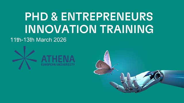 ATHENA, Анонси подій, Новини ДМС Тренінг з інновацій для аспірантів та підприємців від альянсу ATHENA 21.02.2026 / Альянс європейських університетів ATHENA запрошує аспірантів та підприємців долучитися до онлайн-тренінгу з інновацій.Де: 100% онлайнКоли: 11–13 березня 2026 р.Мова: англійськаРеєстрація: до 25 лютого 2026 р. надішліть електронного листа на адресу christelle.rivas@univ-tours.frЦільова аудиторія: аспірантиКонтактна інформація: christelle.rivas@univ-tours.frКороткий опис: Цей триденний вебінар має на меті допомогти аспірантам розвинути підприємницьке мислення та визначити можливості для створення бізнесу на основі досліджень та основних соціальних і екологічних викликів.Детальна інформація: https://athenauni.eu/developing-an-entrepreneurial-mind-set-for-phd-candidates/