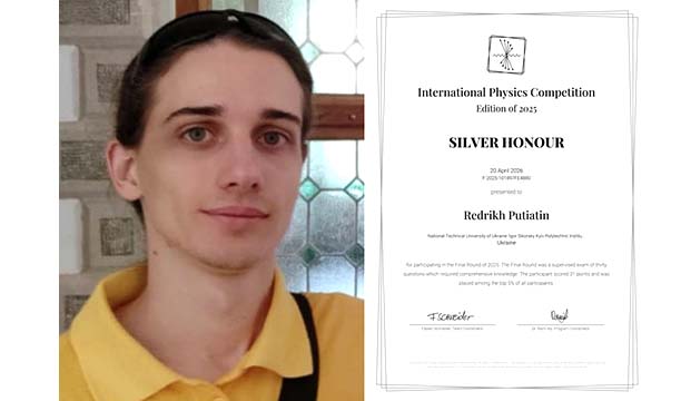 Redrikh Putiatin, a postgraduate student at the Automation Hardware and Software Department of the Igor Sikorsky Kyiv Polytechnic Institute, displayed remarkable abilities at The International Physics Competition (IPhyC), receiving a Silver Honour on 20 April 2026.