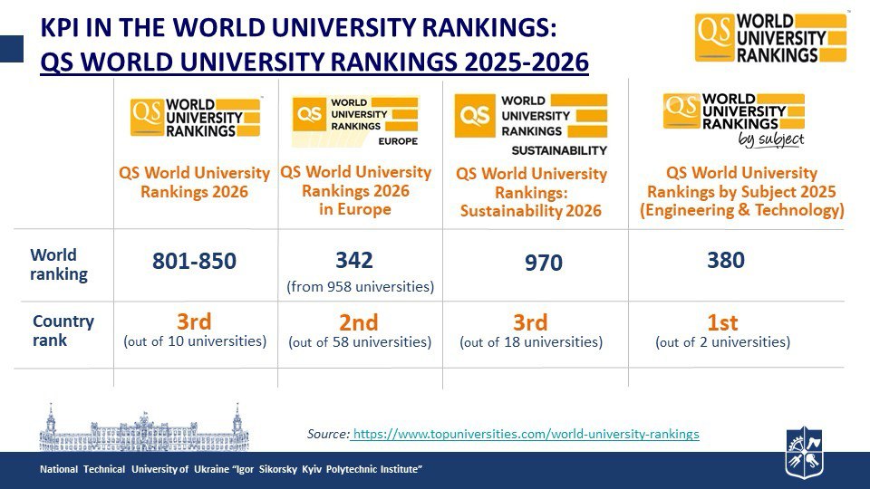 КПІ У СВІТОВИХ РЕЙТИНГАХ